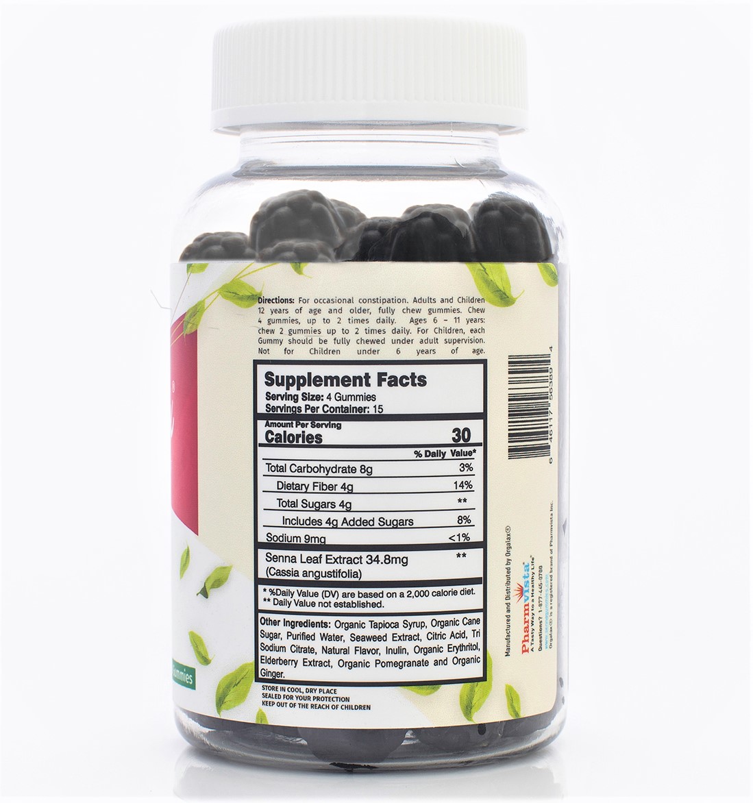 The sennosides in the Orgalax gummy act as a Natural laxative - providing a gentle relief for constipation*. Follow the appropriate dosing instructions in label*.